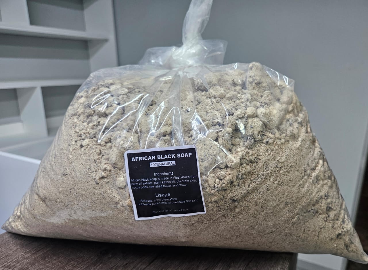 Our authentic African Black soap powder is handmade and sourced from West Africa.
